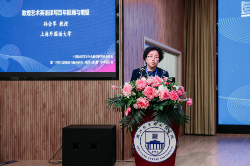 上海外国语大学孙会军教授作了题为“敦煌艺术英语译写百年回顾与瞻望”的主旨发言,在她看来,敦煌艺术——洞窟艺术、彩塑艺术以及莫高窟藏经洞出土的木版画、绢画等艺术历史底蕴雄浑厚重,文化内涵博大精深,艺术形象美轮美奂,展示了中国艺术的魅力和自信。中国文化“走出去”,敦煌艺术英语翻译是题中应有之义。孙教授在发言过程中梳理了1912年以来敦煌艺术在英语世界的翻译与书写,探讨了相关文献中敦煌艺术核心概念的翻译问题。