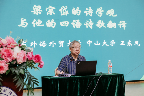 中山大学王东风教授的主旨发言题为“梁宗岱的诗学观与他的四语诗歌翻译”。他通过对瓦雷里与梁宗岱诗学观的比较,深入探讨梁先生在诗歌翻译领域的卓越贡献和独特方法。他以“四语诗歌翻译”为例,分析了梁先生在法-汉、英-汉、德-汉、汉-法四种语对的诗歌翻译。他认为,梁先生不仅在部分法汉诗歌翻译中达到了“格律等值”的高度,而且在一些德汉诗歌翻译中实现了节拍对应,英汉诗歌翻译中实现了“以顿代步”,充分展现了对形式对应的重视。