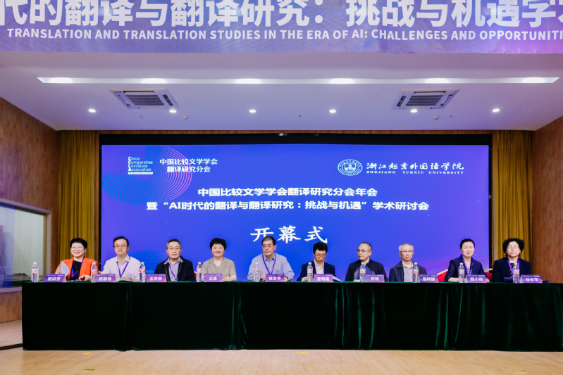 2024年5月24日至26日,中国比较文学学会翻译研究分会年会暨“AI时代的翻译与翻译研究:挑战与机遇”学术研讨会在浙江越秀外国语学院镜湖校区顺利召开。本次研讨会由中国比较文学学会翻译研究分会和中外语言文化比较学会翻译文化研究会联合主办,浙江越秀外国语学院承办,杭州中语科技有限公司、上海外语教育出版社共同协办。来自全国50多所高校和机构单位的200余位专家学者参加。