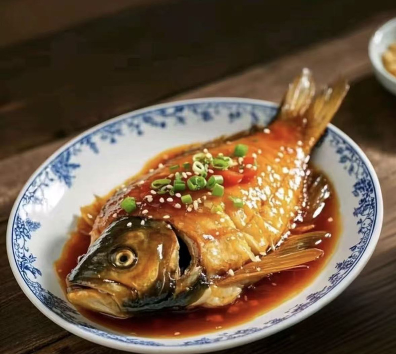 West-lake braised fish in vinegar - a traditional delicacy in Hangzhou. It is said that there was once a boy who made his living by fishing. When he fell ill, his sister-in-law fished for him and braised the fish she caught with a marinade of vinegar and sugar. He was said to have made an immediate recovery after eating it. The boy's story aroused the attention of the emperor and the recipe has been used ever since.