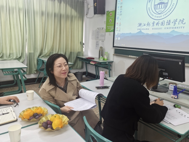 英语学院于11月5日中午12:30-14:00在稽山校区A206,组织了四位新教师进行磨课教研活动,特邀学校教学督导组组长何建乐、学院教学督导郭兰英、英语系系主任尹付、助讲导师钱建萍和王敏全程指导,活动由英语学院副院长张玉宏主持。