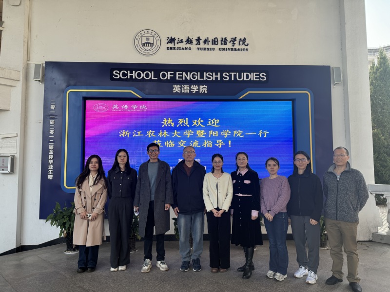 11月14日下午,浙江农林大学暨阳学院人文学院英语专业负责人何芳教授一行莅临浙江越秀外国语学院英语学院进行调研交流。我院教学副院长张玉宏、英语系主任尹付、教研室主任简成瑶等参与接待并开展交流研讨。