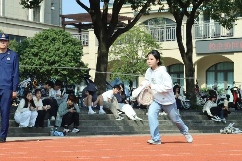 本次消防运动会聚焦“学、练、赛”一体化模式,精心设置水带百米负重、灭火器折返跑、着消防服灭火等多个实战化项目。各项目模拟真实险情场景,要求参赛者在限定时间内完成判断、决策与操作,全面检验学生的安全意识、团队协作能力与应急实操水平,为英语学院学子搭建了锤炼消防技能的实战平台。