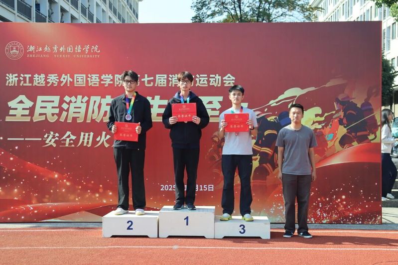 激烈角逐中,英语学院参赛队员沉着冷静、配合默契,凭借扎实的消防技能储备与稳定的临场发挥,一路过关斩将,斩获多项优异成绩:蒋福同学在男子一人两带连接项目中勇夺第一名,汪海星同学荣获该项目第三名;龚金冬同学表现亮眼,分别摘得水带百米负重、灭火器折返跑两项赛事的第二名。凭借队员们的出色表现,英语学院最终以优异总分荣获团体总分第三名的好成绩,用实力书写荣耀篇章。