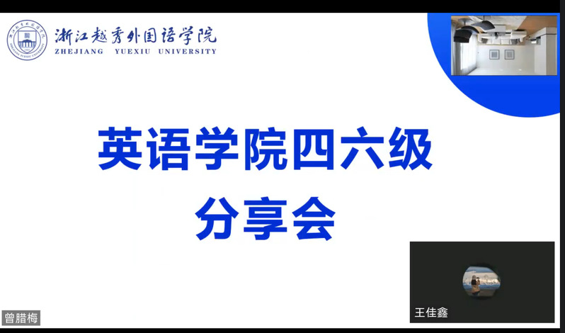 111018:30-19:30,一场别开生面的四六级备考经验分享会通过线上直播平台成功举行。本次分享会由英语系主任尹付教授发起,读写教研室主任曾腊梅老师主持,特邀国家奖学金获得者英语2202班王佳鑫同学担任主讲,为备战考试的英语专业24同学们带来了一场精准、高效的“云”端指导。