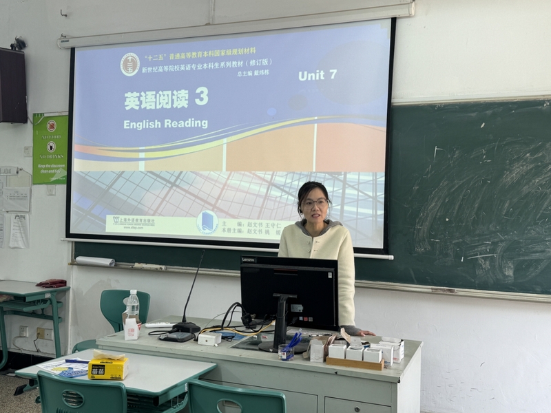 为提升新教师课堂教学能力,2025年11月20日下午,英语学院在A206教室举行《英语阅读3》Unit 7 教学示范与研讨活动。活动由张玉宏副院长主持,陈瑜、冯秋琴两位经验丰富的教师主讲,四位新教师参与观摩与交流。