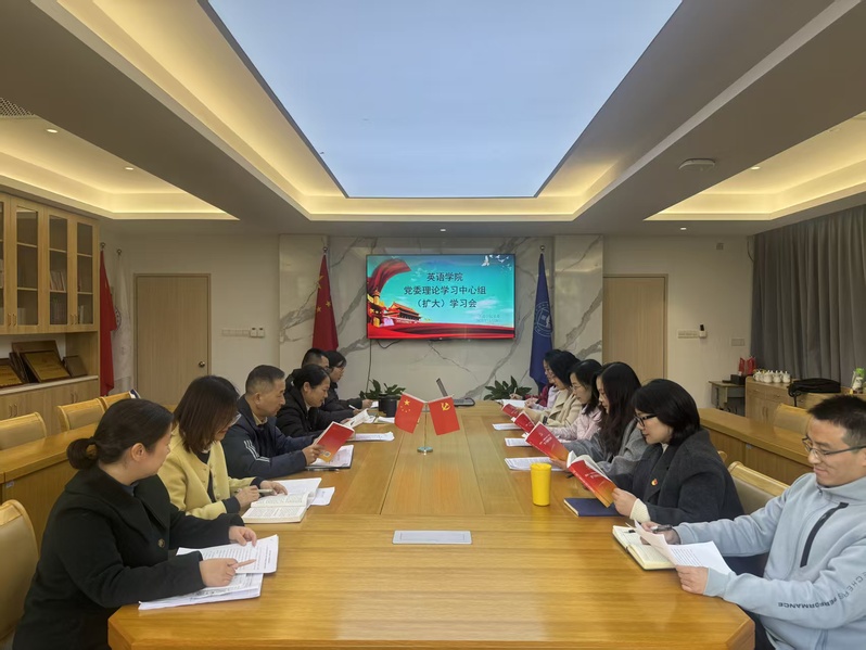 11月26日,英语学院党委召开理论学习中心组(扩大)学习会,学习《党的二十届四中全会〈建议〉学习辅导百问》《中国共产党思想政治条例》《习近平:加快建设教育强国》,认真学习贯彻习近平总书记关于教育的重要论述。学院党委理论学习中心组成员和各支部书记参加,学习会由李敏书记主持。