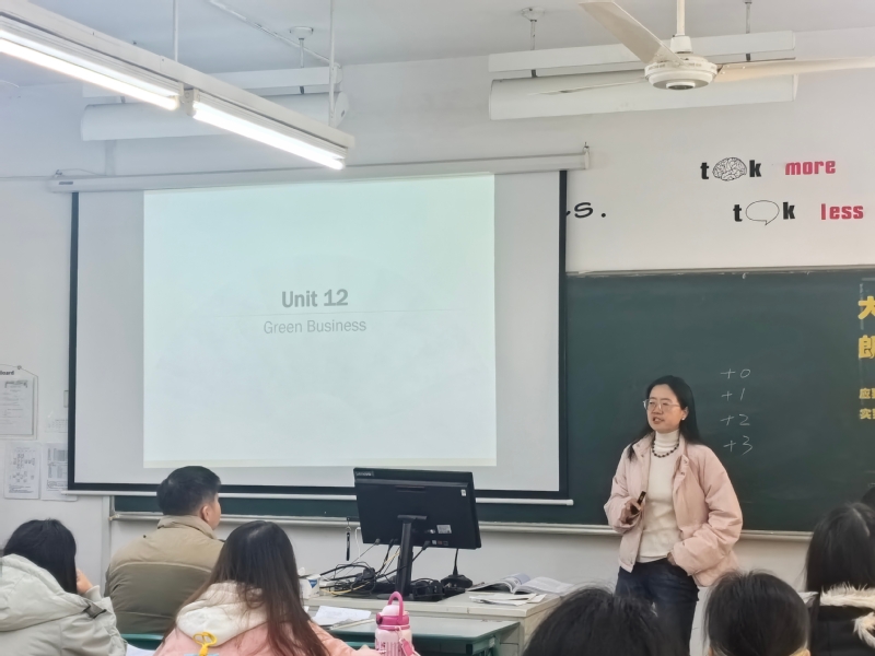 为切实提升新进教师课堂教学能力,推动教学质量整体提升,2025年12月11日上午8:50,英语学院在B205教室开展了《商务英语阅读1》Unit 12专题教学示范与研讨活动。本次活动由张玉宏副院长精心策划,特邀教学经验丰富的钱建萍老师主讲,三位新教师全程参与观摩并深入交流。
