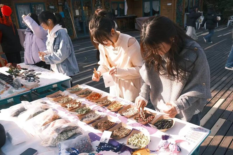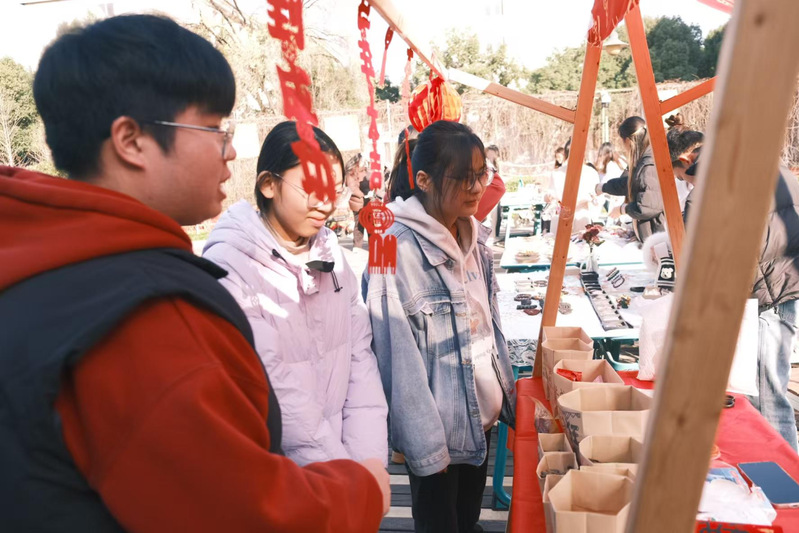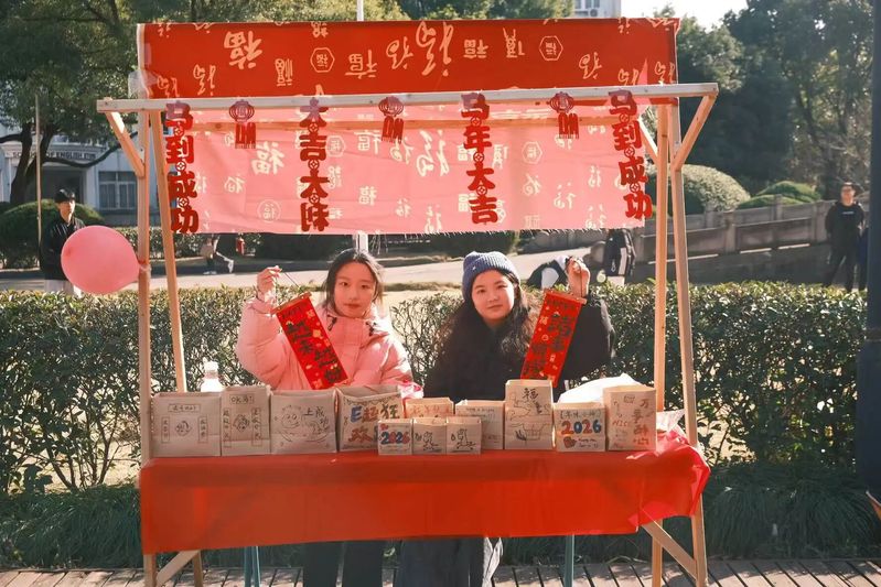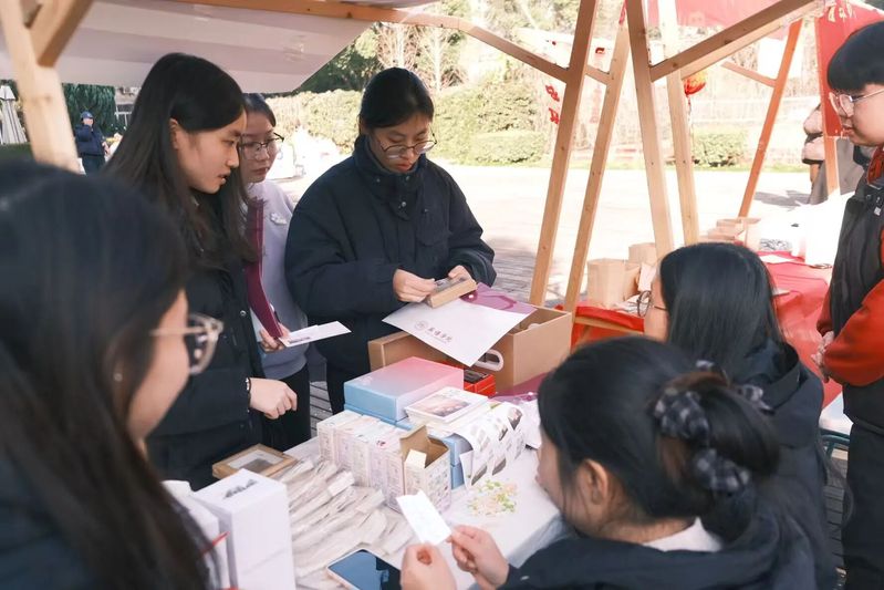 现场热闹非凡、人气高涨,多元摊位各具亮点、精彩纷呈。精致银饰质感出众,尽显独特格调;手作香包藏满匠心,裹挟细腻温情;潮流妆造灵动多变,定格青春靓丽风采;文艺书签雅致清新,镌刻诗意韵味,丰富品类尽显创意巧思,充分点燃师生参与热情。