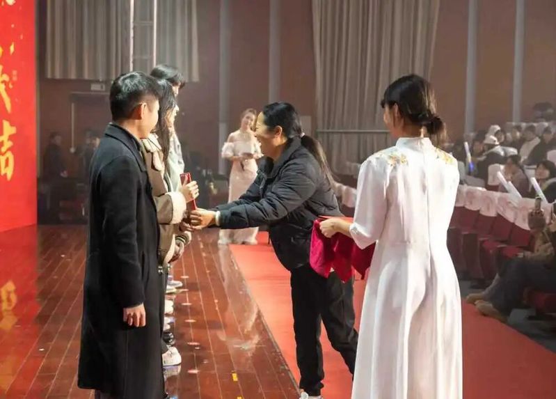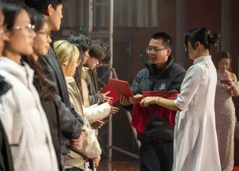 夜色渐浓,《我爱你中国》的激昂旋律仍在报告厅回荡,每一句歌声都凝聚着英院人对祖国的赤诚、对学院的深情。主持人踏着旋律走上舞台,声音饱含温度与力量:“今夜,我们以青春为笔,以热爱为墨,在英院的舞台上绘就了一场视听盛宴;今夜,我们以欢笑作伴,以温情相拥,见证了师友同心、逐梦同行的动人时刻。”