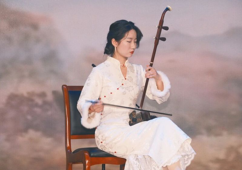 紧随其后的乐器弹奏环节同样惊艳全场,陈紫妍的小提琴独奏《大鱼》悠扬婉转,鲍诵涵的二胡独奏《何以歌》韵味悠长,二人携手演绎《兰亭序》更将中西乐器之美交融,余韵绕梁。