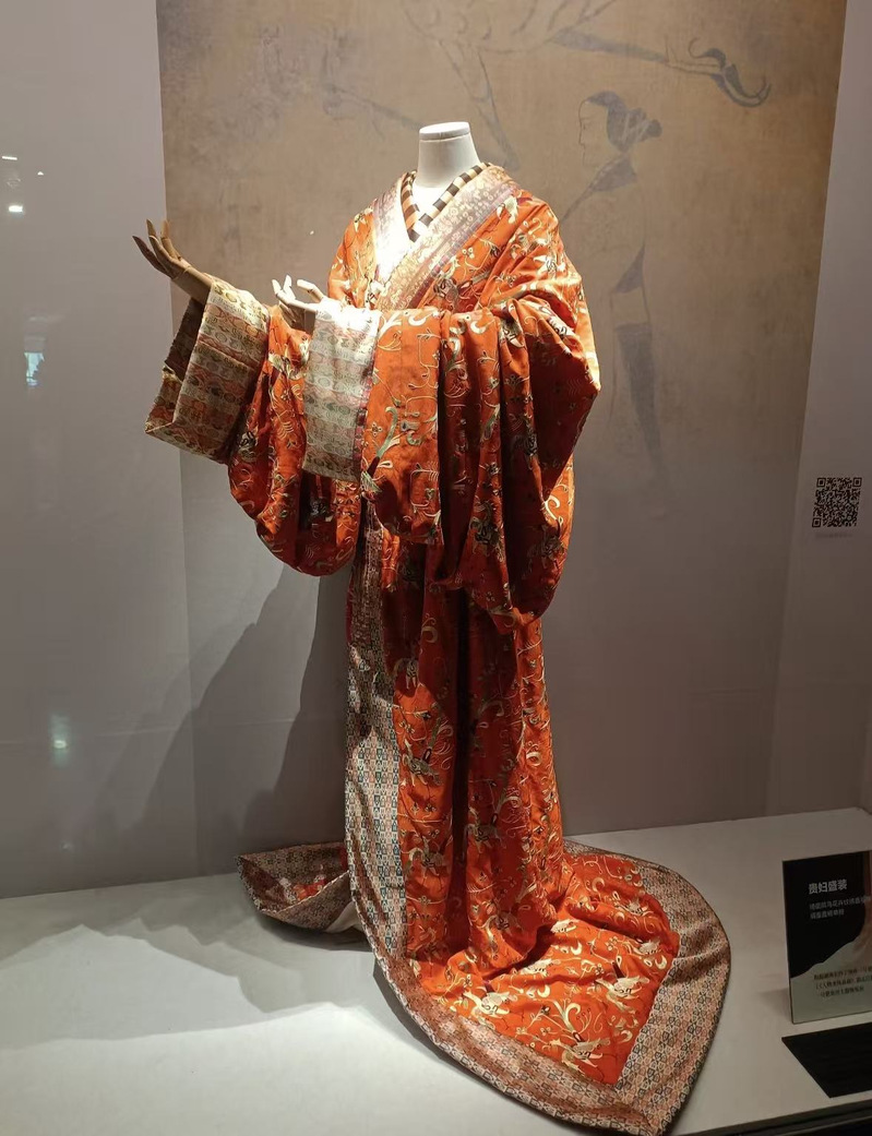 Legend has it that Hanfu as a fashion style was developed by Huangdi (the Yellow Emperor) more than 4,000 years ago. It subsequently evolved with the changing times resulting in a plethora of clothing types, patterns, and craftsmanship, including daily wear for the common people and formal attire for monarchs and offi- cials, creating rigid dress codes. The y-shaped jiaoling youren is a typical style of Hanfu, featuring overlapping collars at the front that close to the right side, reflecting the traditional concept that the right side has priority. Ceremonial Hanfu typically has wide sleeves and is decorated with various patterns that reflect the wearer's iden- tity and status. It developed to fit into feudal society's hierarchy and ceremonial systems.