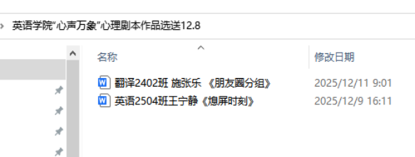 英语学院心聆意站通过心委会积极组织全年级各年级学生参加。截止12月7日共有27人投稿参加摄影作品比赛,择优5组推送校级参赛,心理剧本比赛共8组参加作品,择优推送2组校级参赛。
