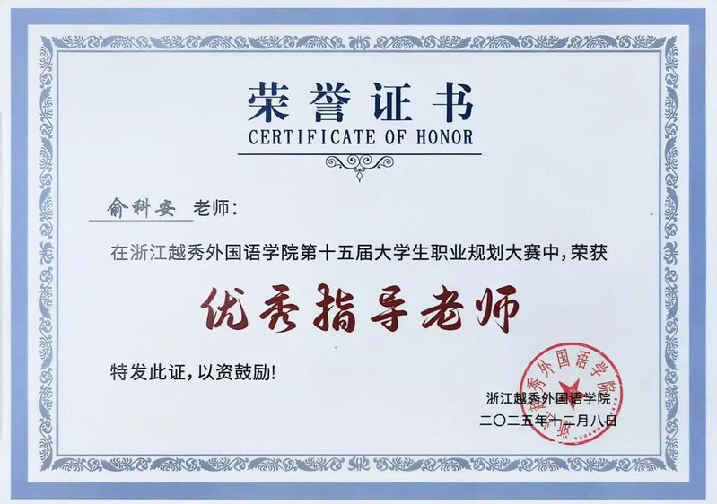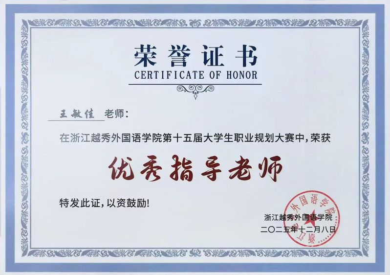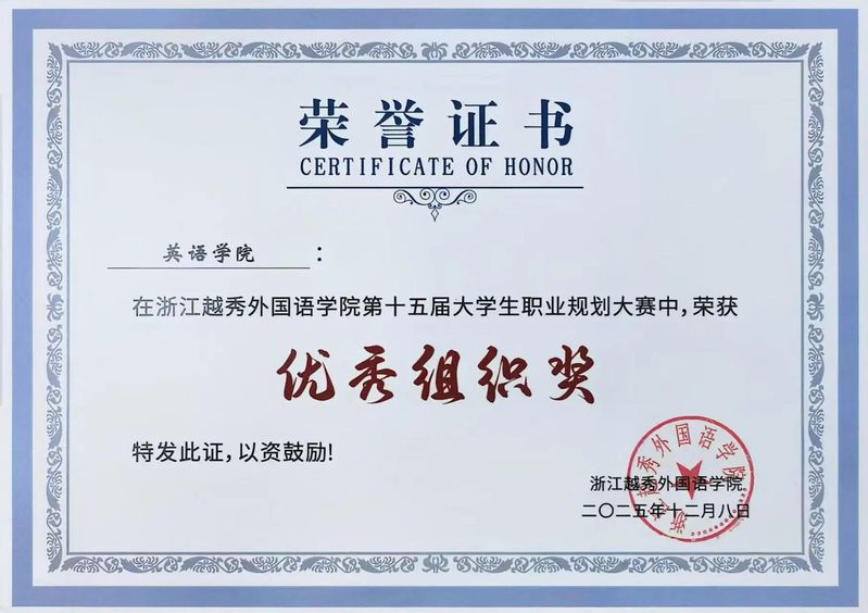 祝贺英语学院荣获浙江越秀外国语学院第十五届大学生职业规划大赛优秀组织奖!