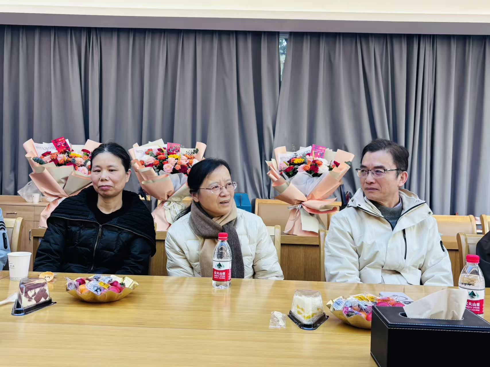 与会人员纷纷追忆与三位教师并肩共事的难忘时光,畅谈合作中的点滴感动。三位荣休教师也深情分享退休感言,言语间满是对教育事业的眷恋、对同事情谊的珍视,以及对学院发展的美好期许。会议最后,学院领导为三位教师送上精心准备的荣休纪念品,再次表达崇高敬意与诚挚祝福。
